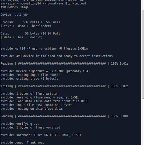 avrdude -p t84 -P usb -c usbtiny -U lfuse:w:0x5E:m