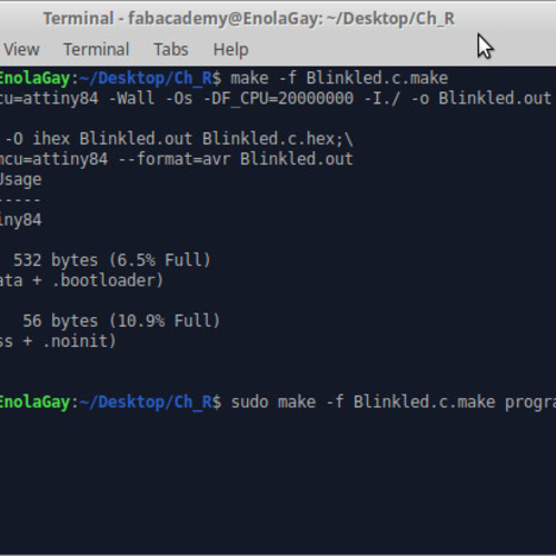 Any text editor,avrdude, and afabISPon Linux: Gilles and Christophe used this solution. It requires a makefile to tell arvdude how to program the chip.Any text editor,WinAVR, and afabISPon Windows 7: Greta and Axel tested this solution, similar to the first on but on Windows 7.Arduino IDEand anArduinoon Windows: Greta and Amy tried tris solution.Atmel studioand afabISPon Windows:Gilles tried this solution, but did not succeed.Atmel studioand aAtmel commercial programmeron Windows: Greta, Amy and Gilles tried this.