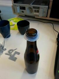 I needed 2 tries to have my printing settings working. The first test did non stick to the plate. I just made a layer calibration, measured the layer height at 0.1 mm, and changed this value in the slicer. I just need to add a silicone joint on my bottle and to fill it with water to test it: