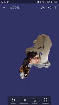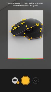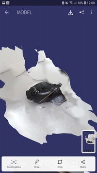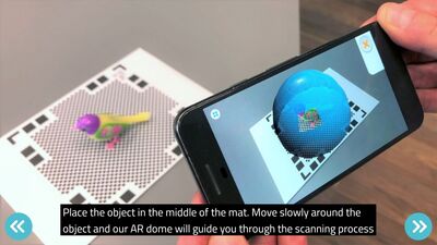 I’ll use first SCANN3D, an application for my Samsung smartphone. This is “real ” photogrammetry. You have to take pictures all around the object. Dots appear on your screen to indicate if the object is recognized.