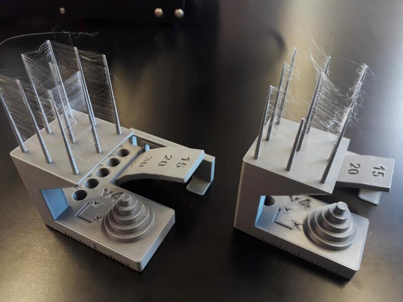 The difference between both parts is however very difficult to see. The main clue is in the inclined plane: It is smoother for low angle (~15°) for the second configuration, with the thinner layer thickness.
