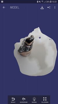 This works pretty well! You don’t have to take picture but to browse a surface aroud the object, the images are taken automatically. Unfortunately, it in not possible to export STL in the free verion… Conclusion: the 3D scan apps remain very limited for the moment. The fab lab just bought a hand scanner, this solution seems better for further scans!