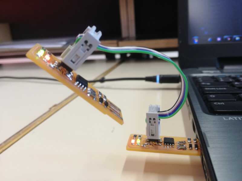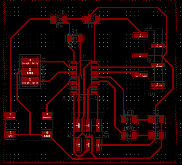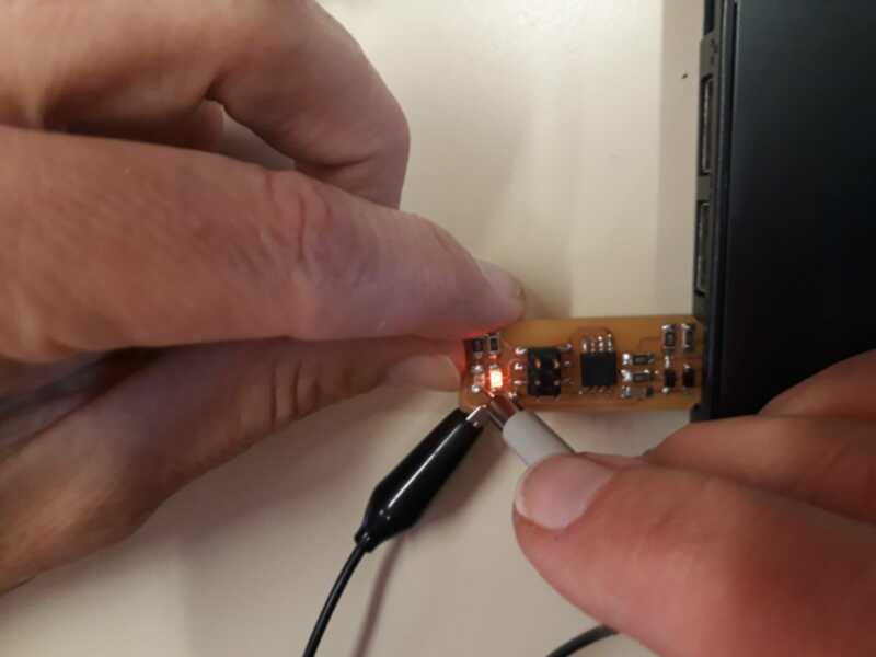 I wanted to do the rest of the fab academy with a working programmer! So I debugged it an had finally my programmer working during week 9! The problem? A bad connection between the headers of my board and the FTDI cable… After the troubleshooting described in week 5, I finally was able to program my hello world board with my USBtiny programmer!