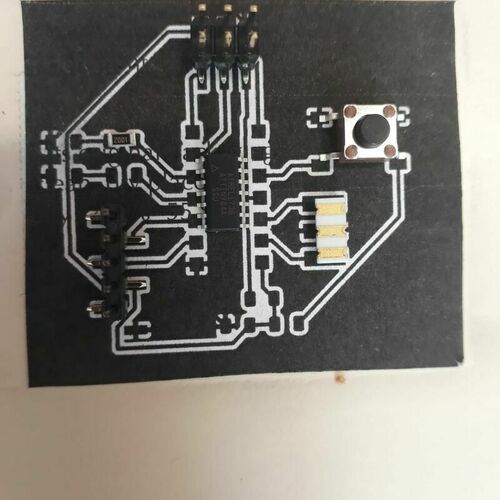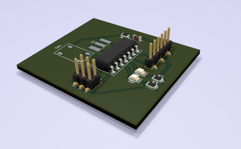 - Wrong packaging for the ATtiny44The traces for the resonator are too spaced.