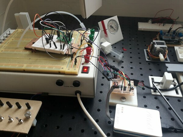 A key point was to calibrate the pressure sensors. To do this, the pressure mas set manually with a syringe, and measured in parallel with an analogue pressure gauge. A correlation was drawn using Excel, the file can be found in the downloadable folder.