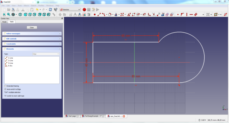 Start drawing with the different tools available: lines, arc,…and add tangential constraints ( selecting two elements) to make a profile