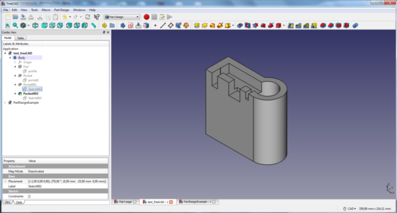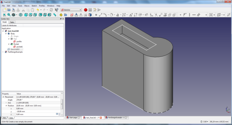 Let’s make a simple 3D structure to get used with the software, e.g. by reproducing the PartDesignExample.