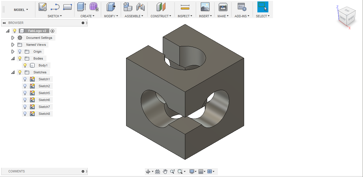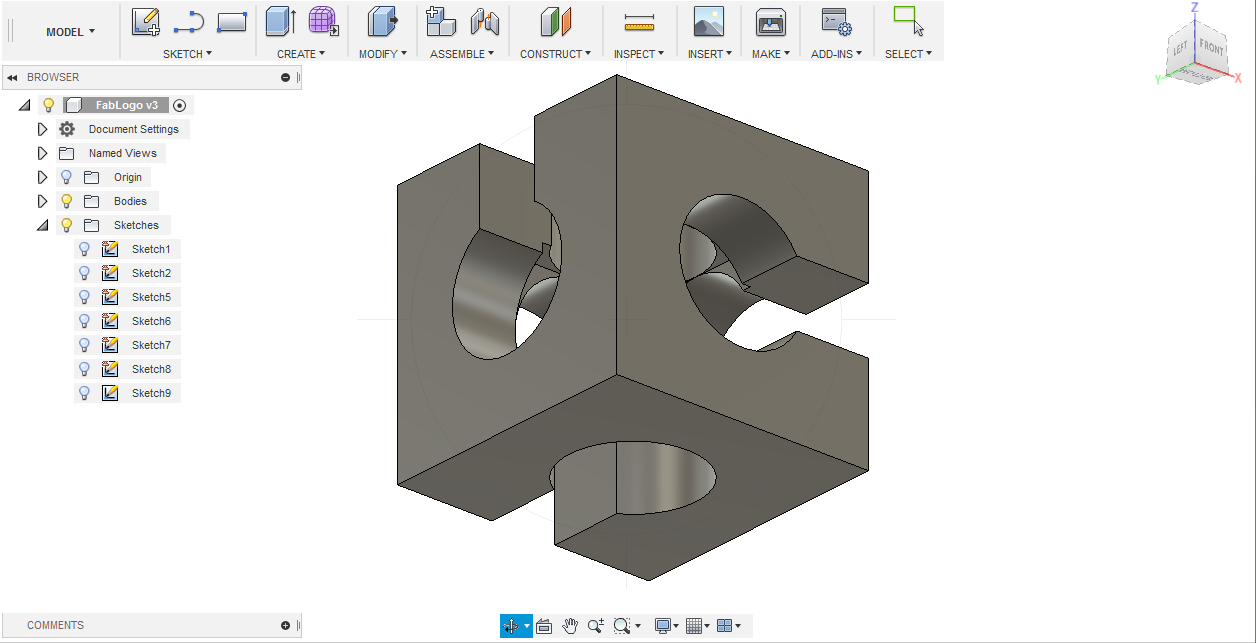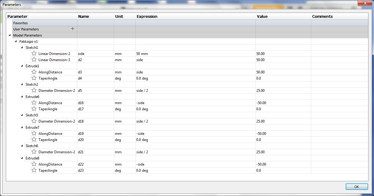 My first idea was to recreate the same structure as in FreeCad, but I changed my mind and decided to redesign the 3D Fabacademy 3D logo, using parametric data: