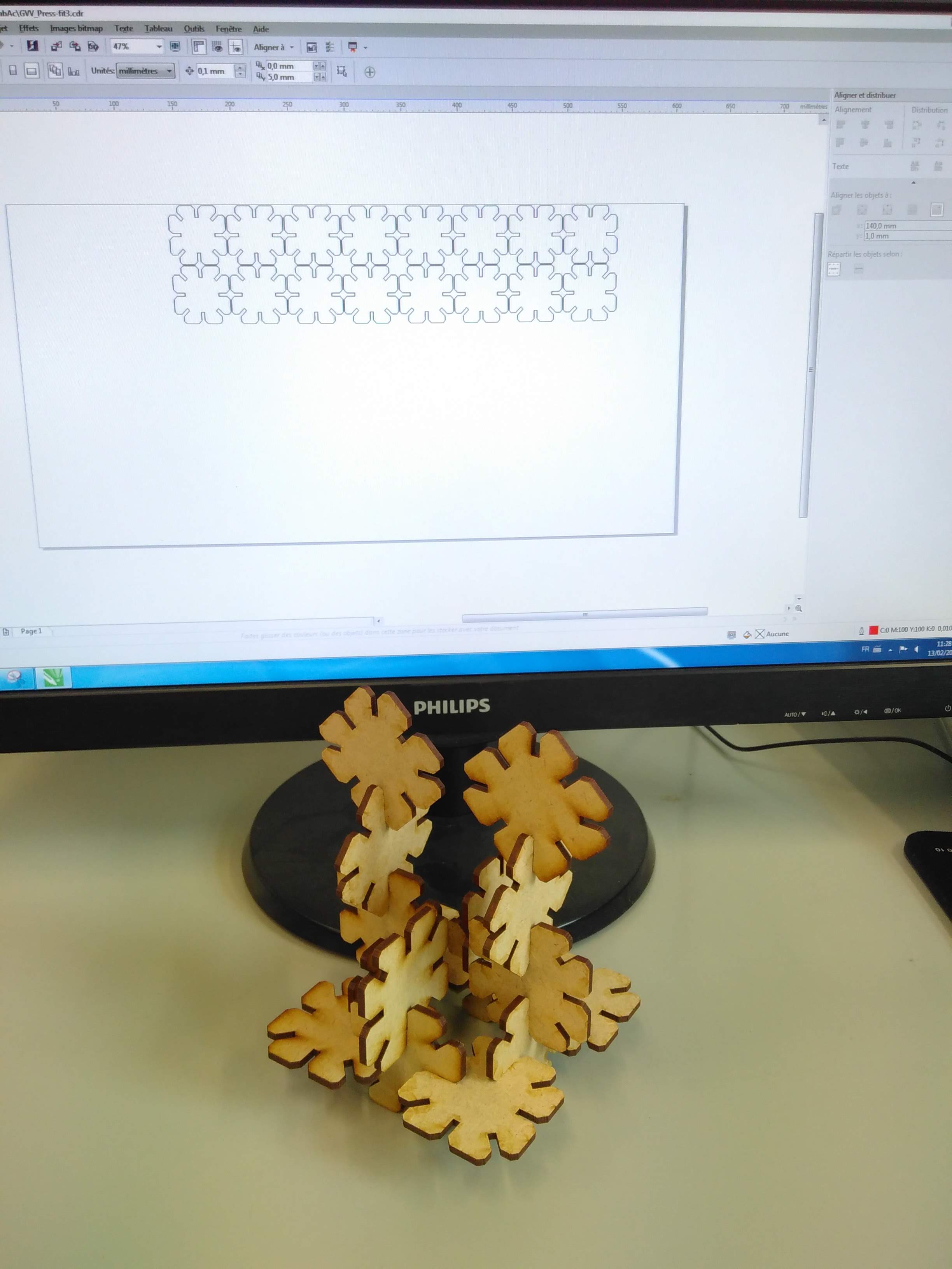 I use the same settings for the laser cutting machine in CorelDraw as for the group assignment…