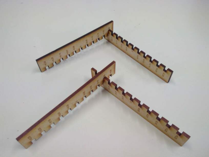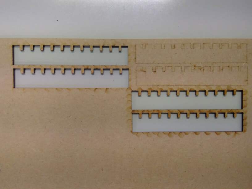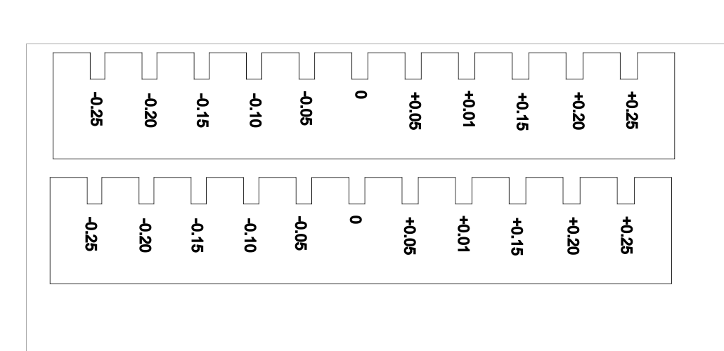 - The width of each slot is added as text, to be engraved on the MDF plate. Do not forget to convert text to curve, and to change the text thickness to 0.2mm to make it more readable.
