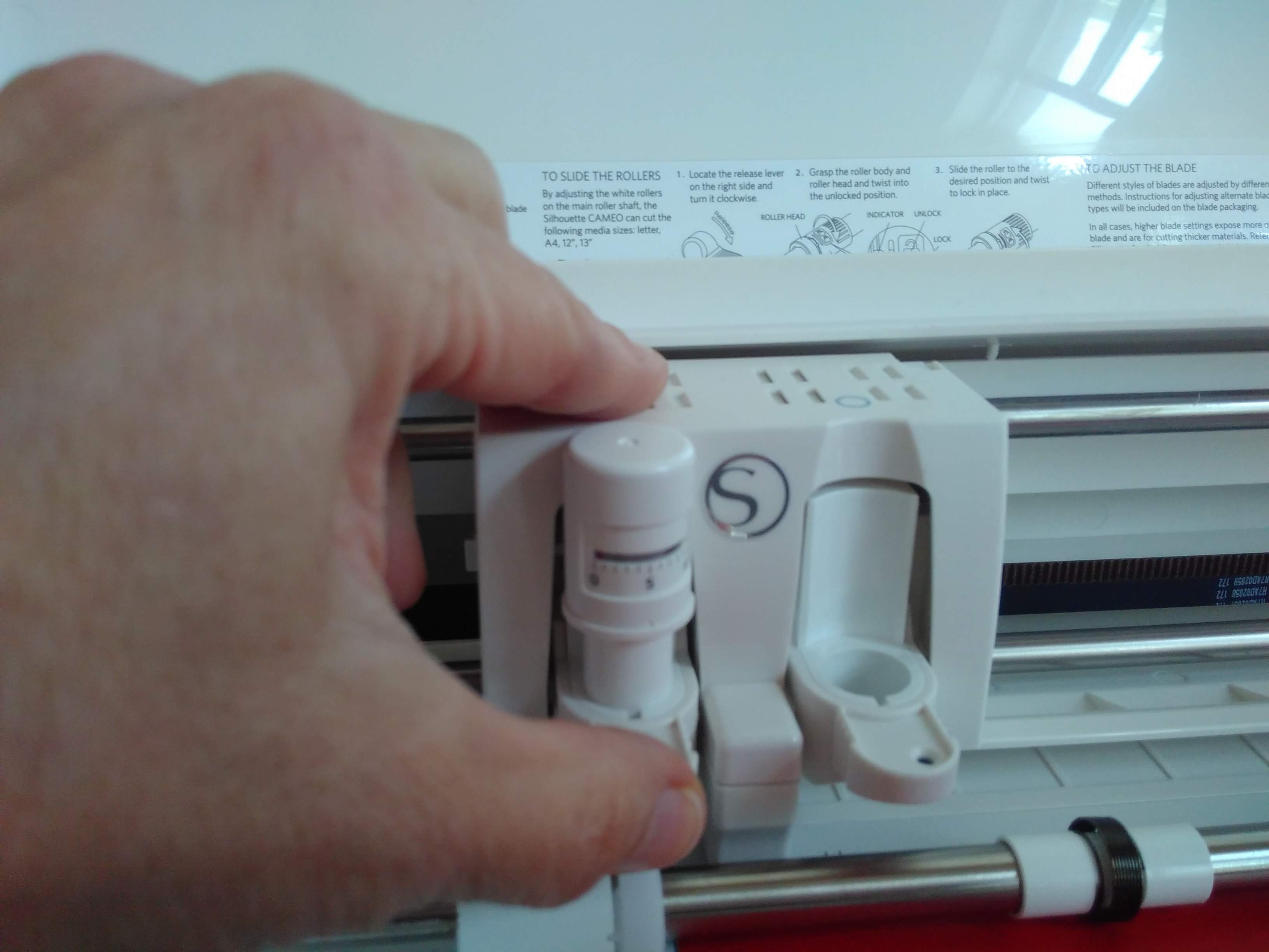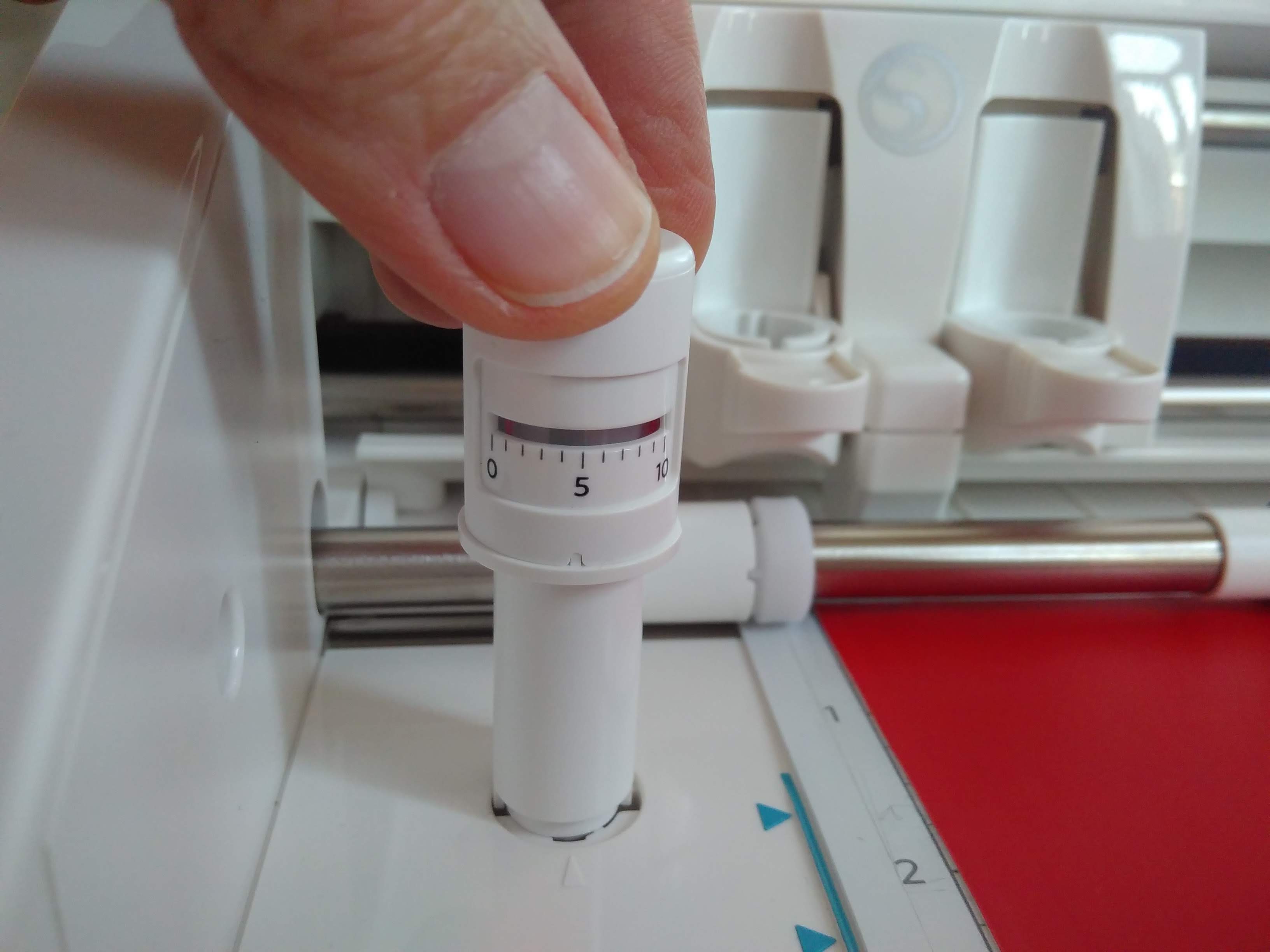 Remove the cutting tool from its support, calibrate it tool on the proposed number (1) obtained from the material choice ( by turning the base cylinder till the red line stands in front of number 1), and place it back, pressing firmly enough!!