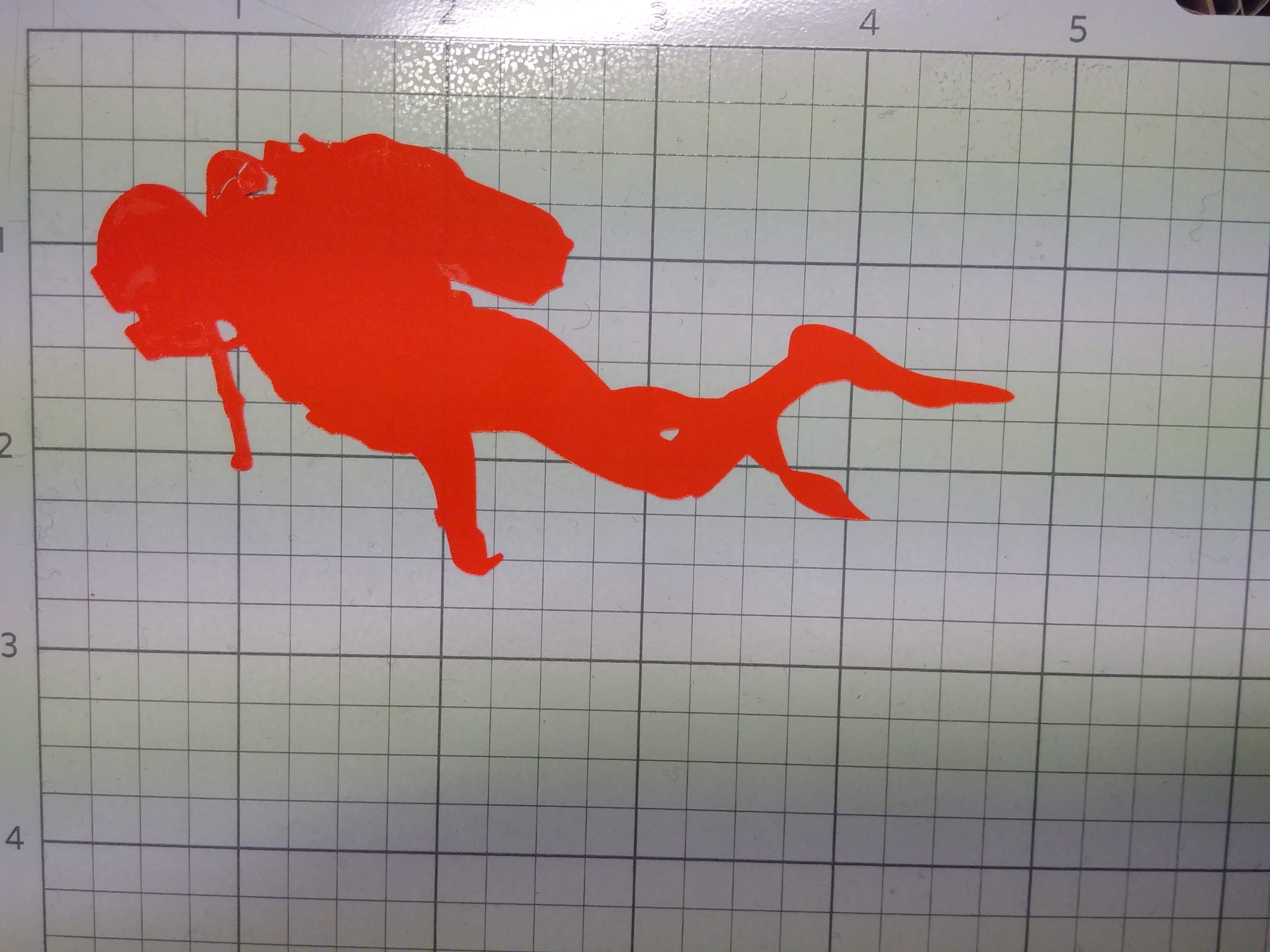 I decided to start with a one color drawing, a scuba diver silhouette; I first isolate the silhouette and turn it in dark black ( with a little help of paint), use then Inkscape to create the cutting path of the silhouette I will later on use in Silhouette Studio, the software from which the cutting machine is controlled…