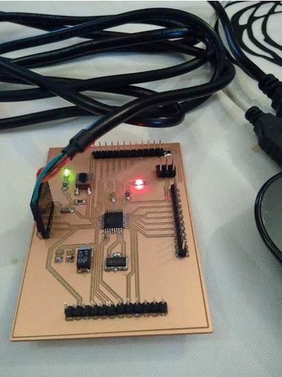 The first test made here is to load a bootloader program in the ATmega328 to enable the future programming through the FTDI connector (Serial bootloader). Hep on this topic can be found here