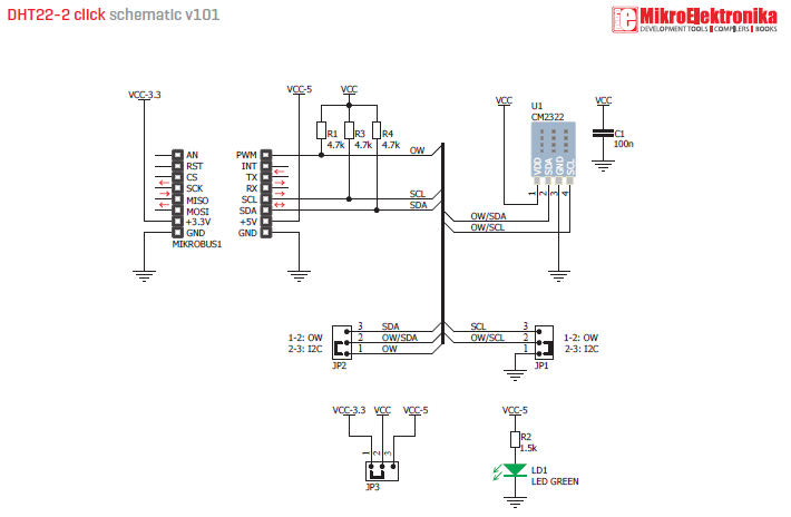 The DHT222 click from Mikroelektronika is a shield for the CM2322 temperature and humidity sensor from ASAIR, with a temperature range of -40~+80°C and a humidity range of 0~99%RH, and a temperature accuracy of ± 0.3 C (25 C), the precision of humidity of ± 2%RH (30~90%RH).