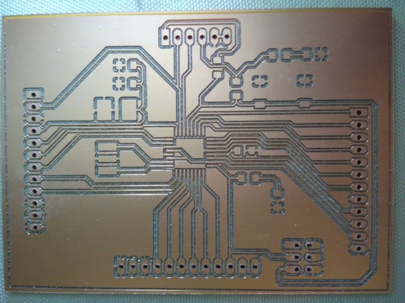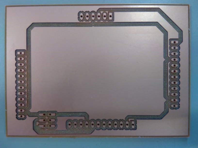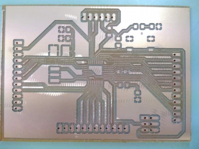 I mill the PCB on a double-sided FR1 board (standard size 127 x 101.6 x 1.70mm) on the Bantam milling machine, following the same process as in week07.