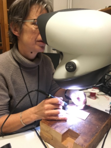 The soldering process is done below a magnifier glass. No major problem, except that ensuring the contact between top and bottom pads through the pins of the pin headers requires a bit of dexterity and patience, as the holes are non plated; extra solder is required on the bottom pad while pushing and moving a bit the pin with the solder iron tip to help the solder flow to the opposite side (top side).