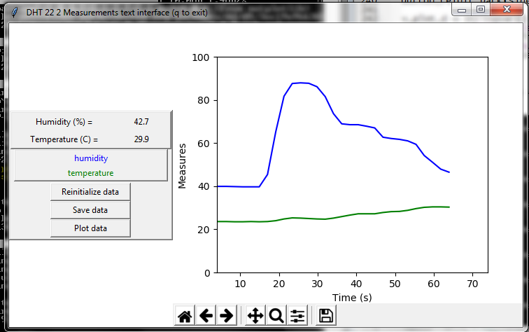 So here is the result when we blow on the sensor, and when we warm it up: It works!