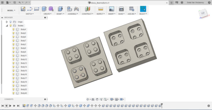 I decided to reuse the molds made for the mold and casting assignment, and to adapt them to this thermoforming process. Redesign is done in Fusion360: