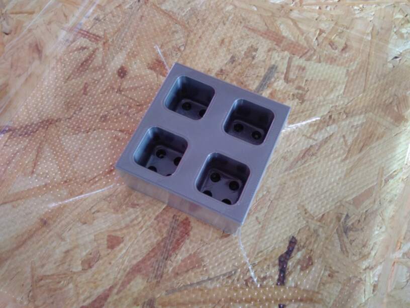 - Mold 2: Small holes of 1mm diameter are added in the bottom of the cavities to allow the air to be vacuum cleaned and the form sheet to fit to the cavities.