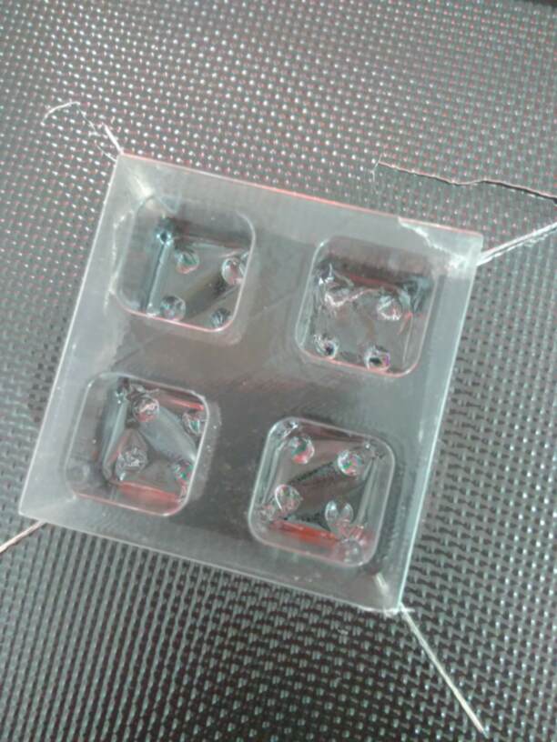 Adding additional holes on the plate between the plates doesn’t really improve the process… - mold 2 provides nice cubic volumes, but the sheet thickness in the bottom of the volumes is too thin, so thin that one of the cube is drilled..