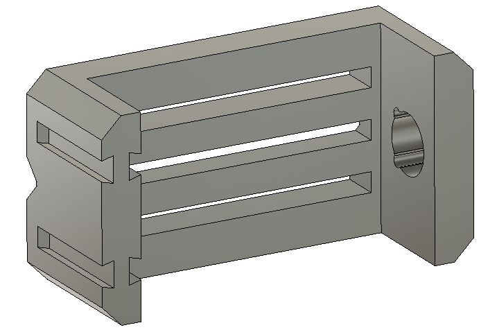 In addition to previous parts, a rod support is made, in order to facilitate the lifting/lowering of the structure. To make it simple, we use the capability of Fusion 360 to “cut” a body with existing bodies.