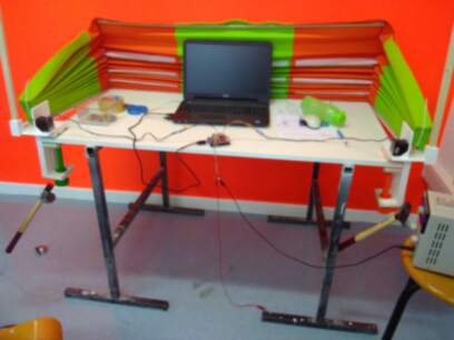 The idea is to have a case in an U form, that can be fixed on the table (60x120cm) - without damaging it, and that supports the felt structure when it is not in use, as well as the controlling electronics.