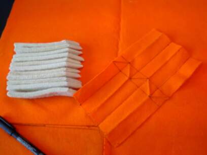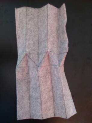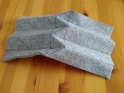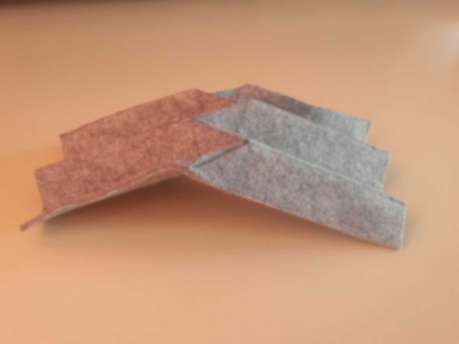Folding the thicker felt is, as expected, more difficult, ironing doesn’t help, but slightly cutting the edges - with a cutter - on half a millimeter depth helps keeping the pattern.