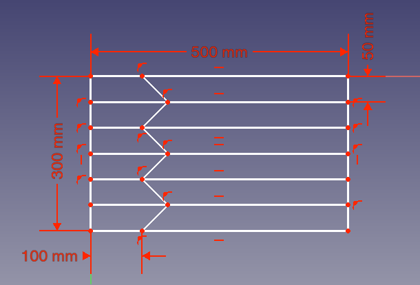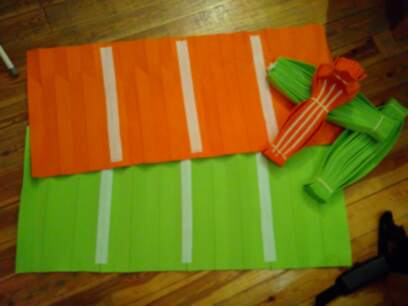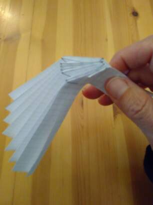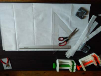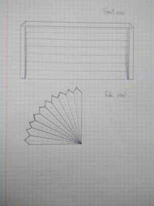 Plane surface with folding pattern: * 5-cm wide strips * width of 125cm minimum, ideally 150cm (this will gives 30 plies of 5cm wide strips) * length of (2x60 + 120 + 2x5 =) 250 cm