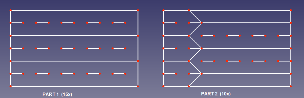 PART1: One pattern with parallel lines only for the surface outside the corners. 15 pieces are required.