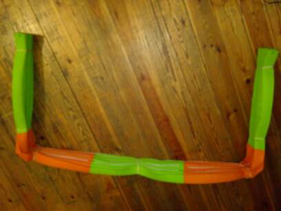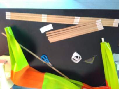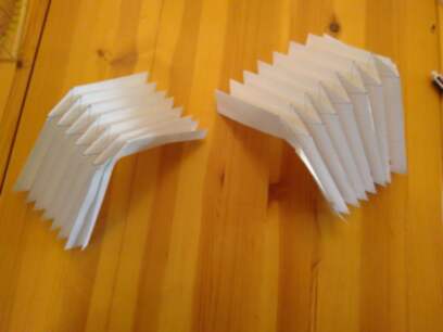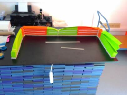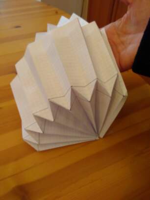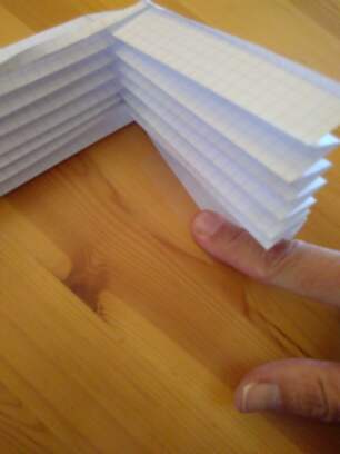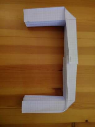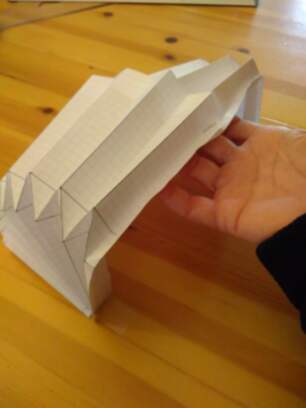 Both structures are linked after folding and fixed on table with adhesive paper: