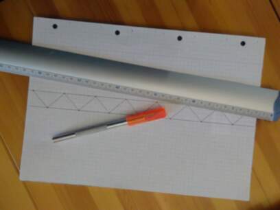 Half of the folding pattern is drawn on scale 9/60 and two similar planes are drawn. This to ease the folding process.