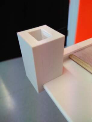 We fix the plywood panel in the CNC machine (see week08) for details of the procedure), and after a few hours and correction of some mistakes, some sandpaper rectification of the profile, a good hammer hit,to get a nice press fit… here is the wood support: