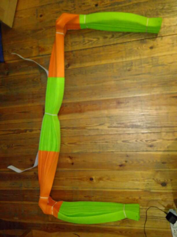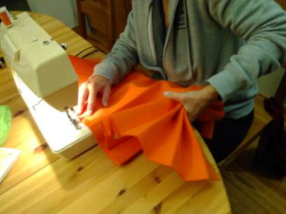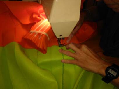 The several pieces are stitched together to recreate the complete structure. Some edges are reinforced with heat sealable textile. This will also help the stitching process: