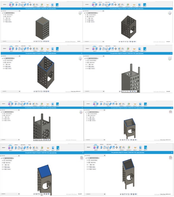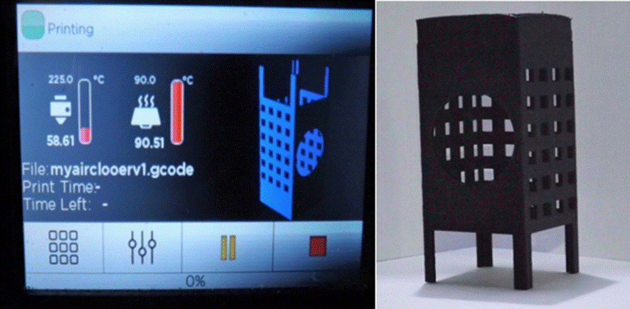 The Solar FAB Air Cooler Body design and 3D printing process is shown below.