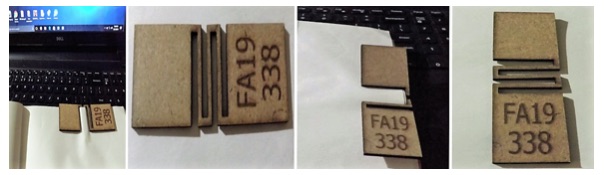 We have used a 2.06 mm Cardboard. We then checked the kerf of each part. We have faced a problem where only 2 squares were cut because of the low speed and power and other two were cut properly.