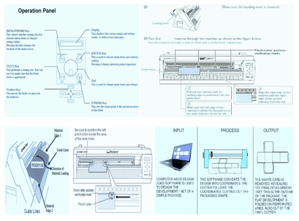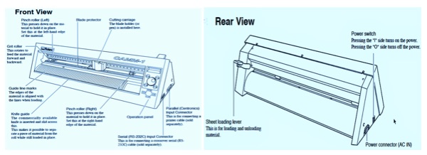 A computer controlled plotting device with a blade instead of a pen. A vector based design is created in a software program (usually Adobe Illustrator or Corel Draw) and then sent to the cutter where it cuts along the vector paths laid out in the design. The cutter is capable of moving the blade on an X and Y axis over the material, cutting it into any shape imaginable.