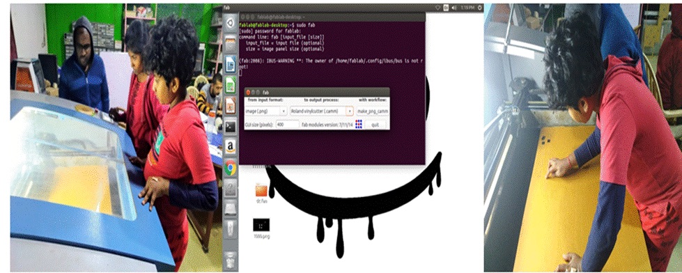 We used the fab modules, to interface with the cutter. Fab modules can use or downloaded for free from the mods - Fab website. To run the module, use the sudo Fab command. Then put the password and press enter. Then I have selected image (.png). Next on the Roland Vinyl Cutter (.camm) then clicked on make_png_camm.