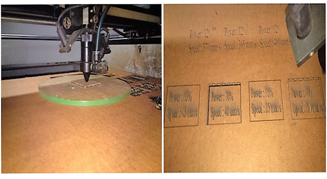 Our Batch was divided into 3 groups. The different materials were allotted to each of the groups. We tested on Cardboard, MDF and Acrylic.
