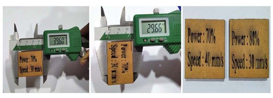 We have designed a 40 X 30mm rectangular shape. Then tested 4 squares at different Speed between 30 to 45 power ranging from 65 to 80.