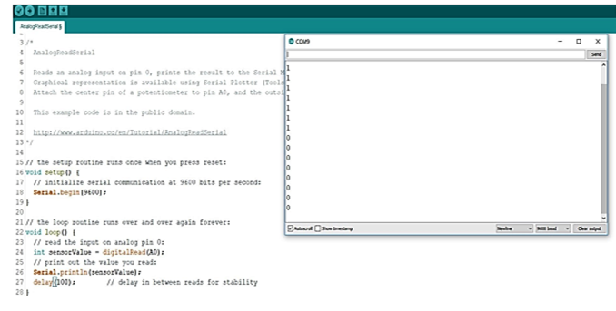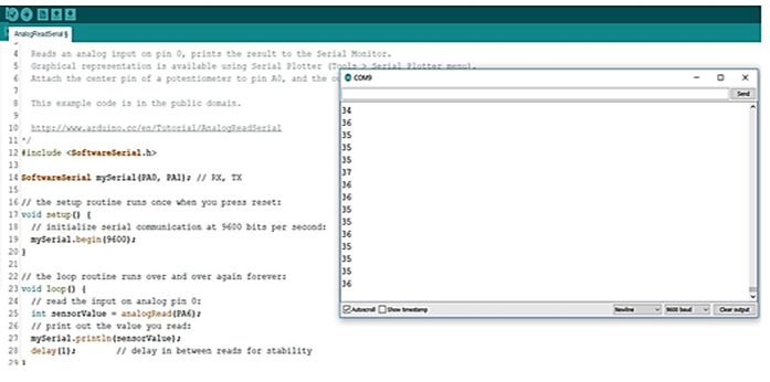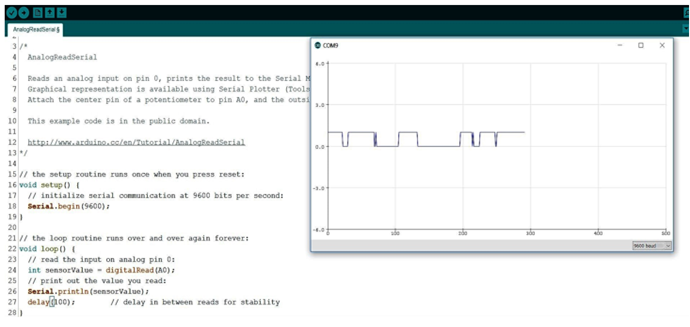 Opened Arduino -->Example --> Basic --> AnalogReadSerial