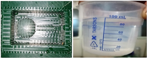 Initially we have poured water in the mold to measure the quantity and took the same quantity of silicon rubber by trying ratios of 1:10 and 1: 20 to start with. Just ensure that there are no air bubbles by stirring the mixture continuously.