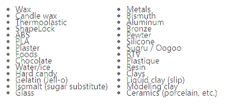 There is an exhaustive list of materials which can be used with various mold-making and casting techniques. But I am sharing a few of them here.