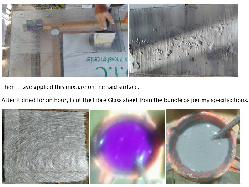 This process failed. Again I reviewed this procedure and realized that the Coconut fibre was causing the sheet breakage. Then I started working again on this process the next day. I stuck to the conventional procedure and went ahead with FRP only.
