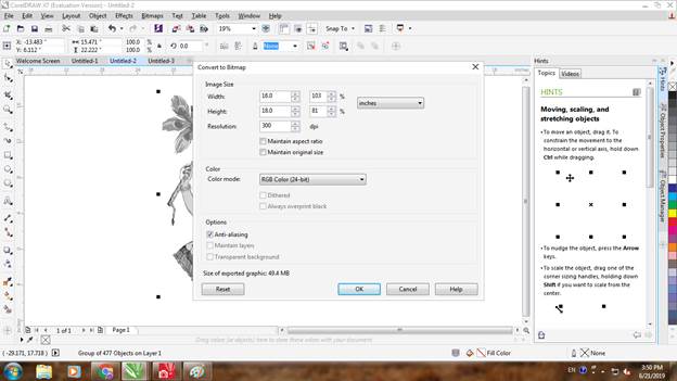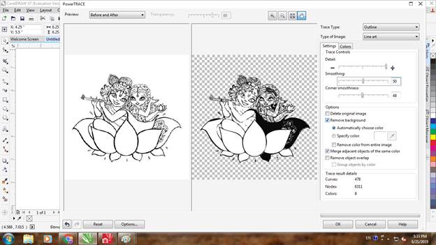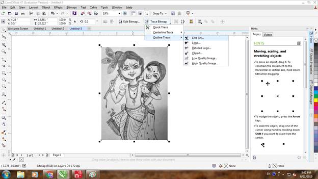Copied the picture in Corel draw and Traced in Bitmap in Line Art