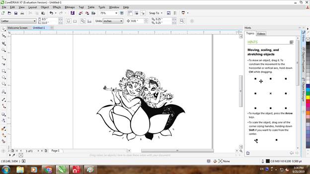 Now, back to square one. I selected a cute picture this time, only sketch in black and white from Google images. Then followed the same procedure and started to embroider my design. I added colors to it on the software.