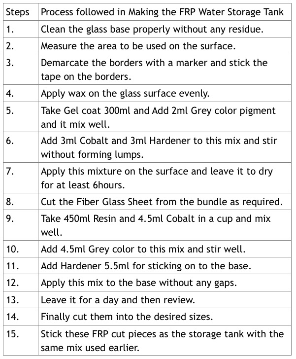 The procedure I have followed in making the FRP water storage tank for the Smart Air Cooler after research: