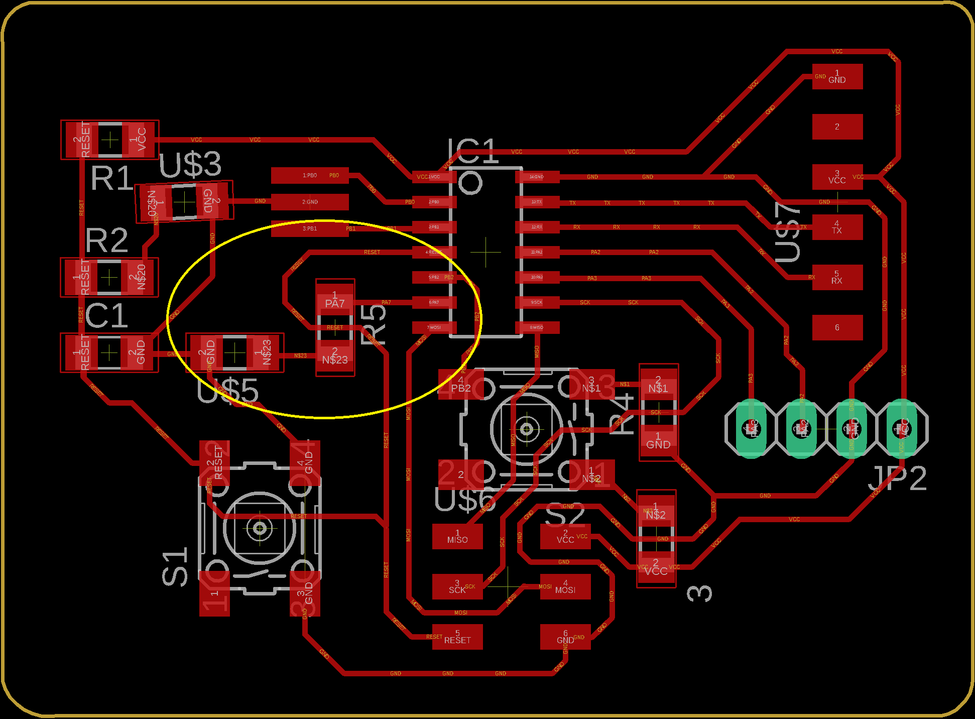 I used my helloworld board for this week i.e.'Embedded Programming'. I had already added 1 LED and that LED connected to the digital pin 'PA7' of Attiny 44 uC. As shown in below: