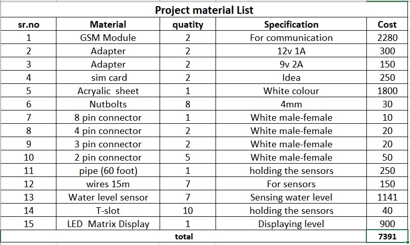 Except for pipes(waterproofing for sensors under dam),Metal sheet,these are coming from pabal either Pune.I will used most of components from Fab Lab Inventory like electronics components for controller board. If some components are not available in Fab Inventory.those components are coming from Local electronic market(Pune).Also I Order it.almost eithers are made in fablab.