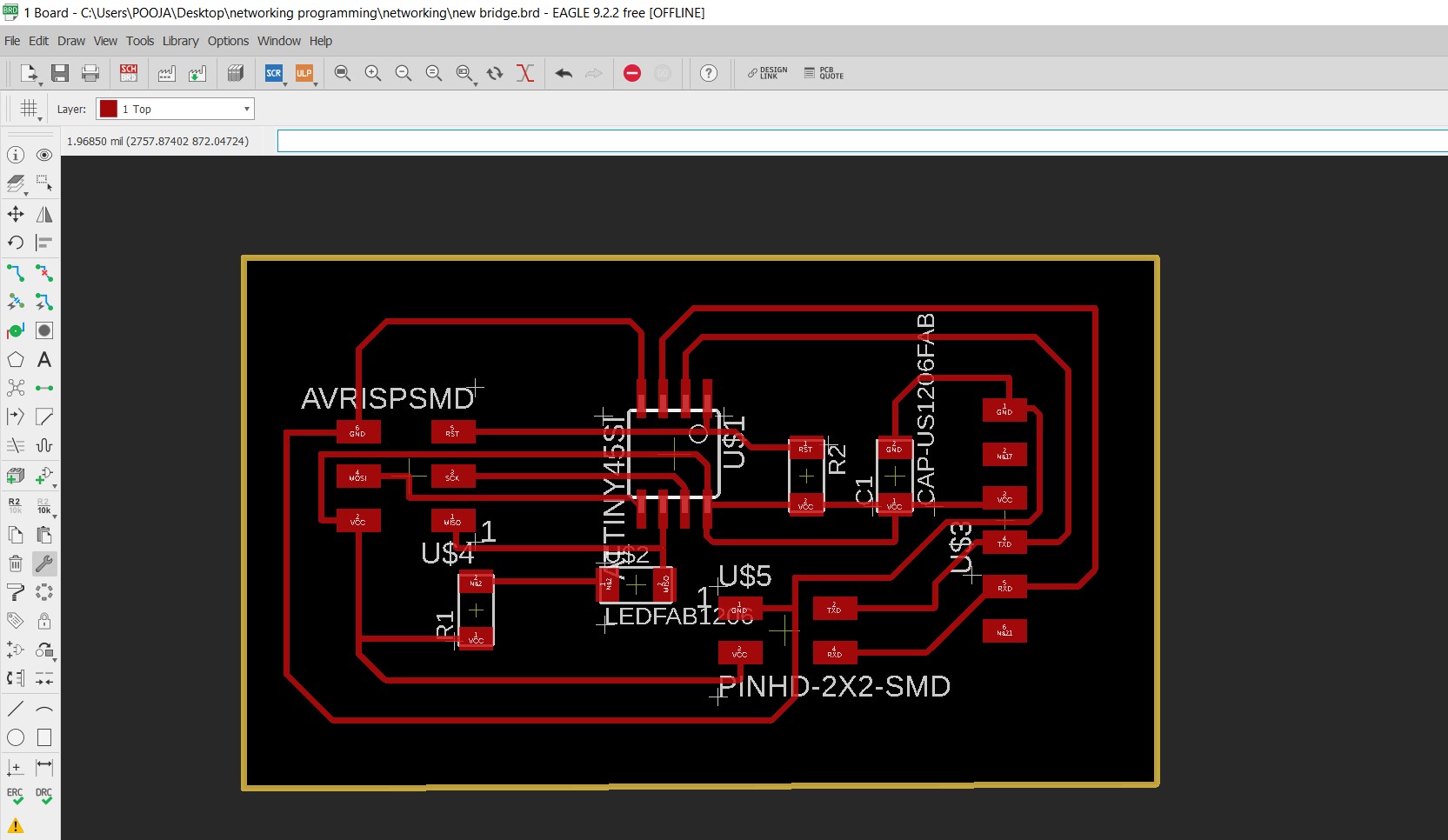 In this Week I made two board i,e. master and slave (bridge and node)board.I followed Neil Board and re-route it.