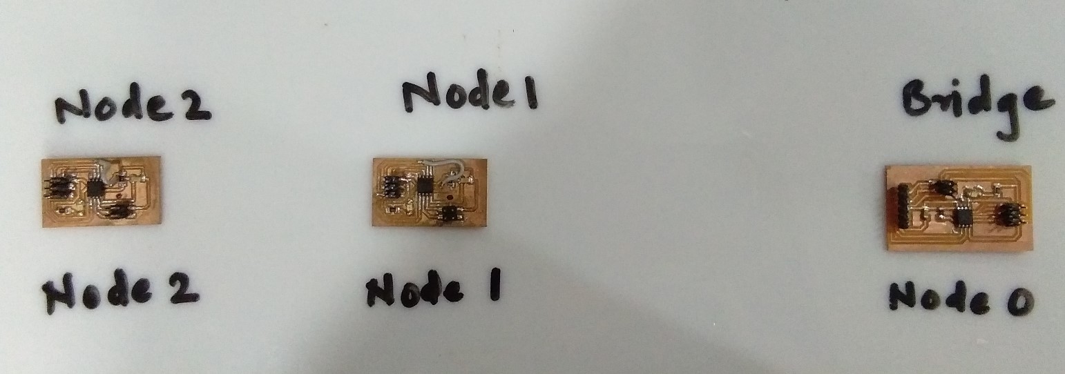After designing I milled my three board (2 Node and 1 Bridge) on SRM20 Machine.then I solder it.